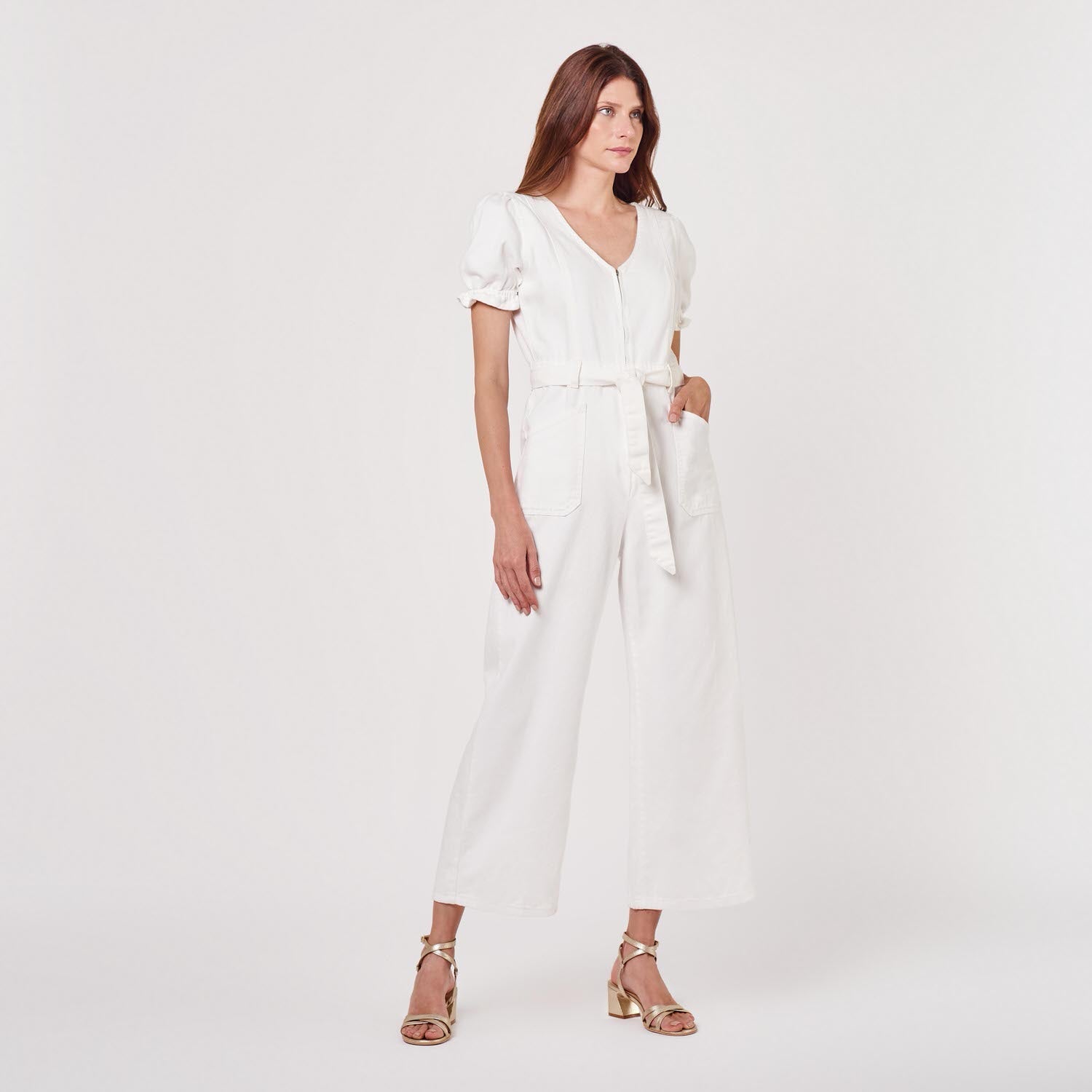 ¡Luce imponente y a la moda en toda ocasión! Odette es un enterizo color hueso confeccionado en bull denim. Amarás sus detalles como sus mangas globo, bolsillos y lazada a la cintura.